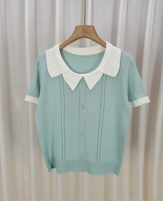 Contrast-color Doll Collar Short-sleeved T-shirt For Women Summer