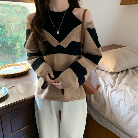 Lightly Mature Spring And Autumn Stripes Lapel Boys Texture Loose Elastic Knitted Sweater