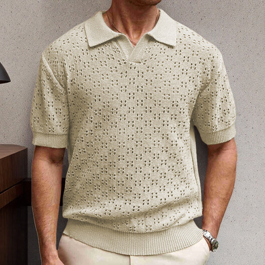 Summer New Short Sleeve Cuban Collar Knitted Polo Shirt