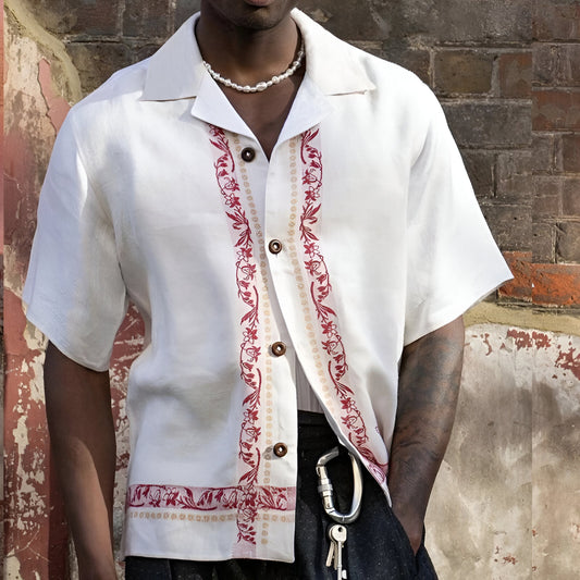 Printing Lapel Short Sleeve Pullover Leisure Men's T-shirt